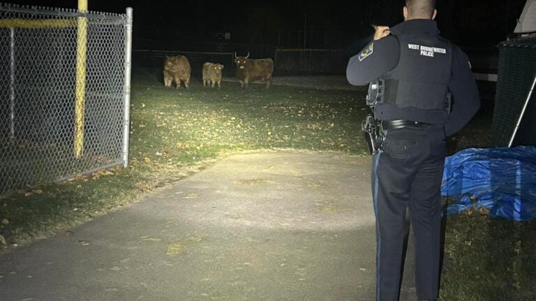 You never know what you’ll encounter in the darkness of night as an officer of the law. Such was the case Nov. 20 in West Bridgewater, when police had a chance meeting with some rather large livestock on a baseball field in town. The department shared a photo on Facebook of an officer shining a flashlight on cattle on the ball field. “Nothing to see here, Officer,” police wrote (in the voice of the animals). To which the officers responded: “It’s too early for baseball tryouts, fellas.”